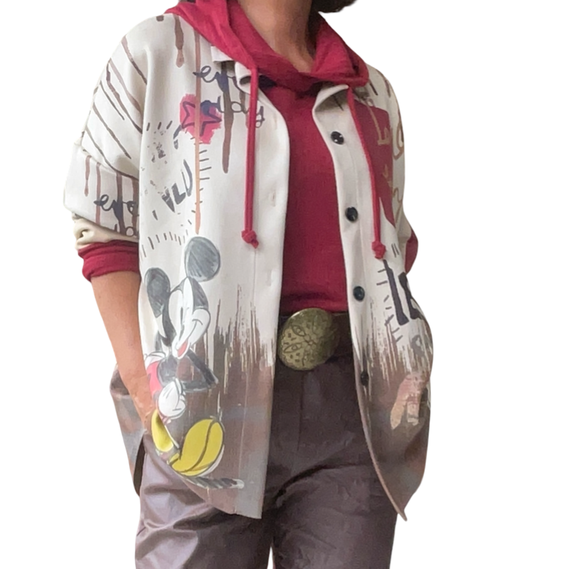 Chemise en ultra suède beige avec dessins de Mickey Mouse