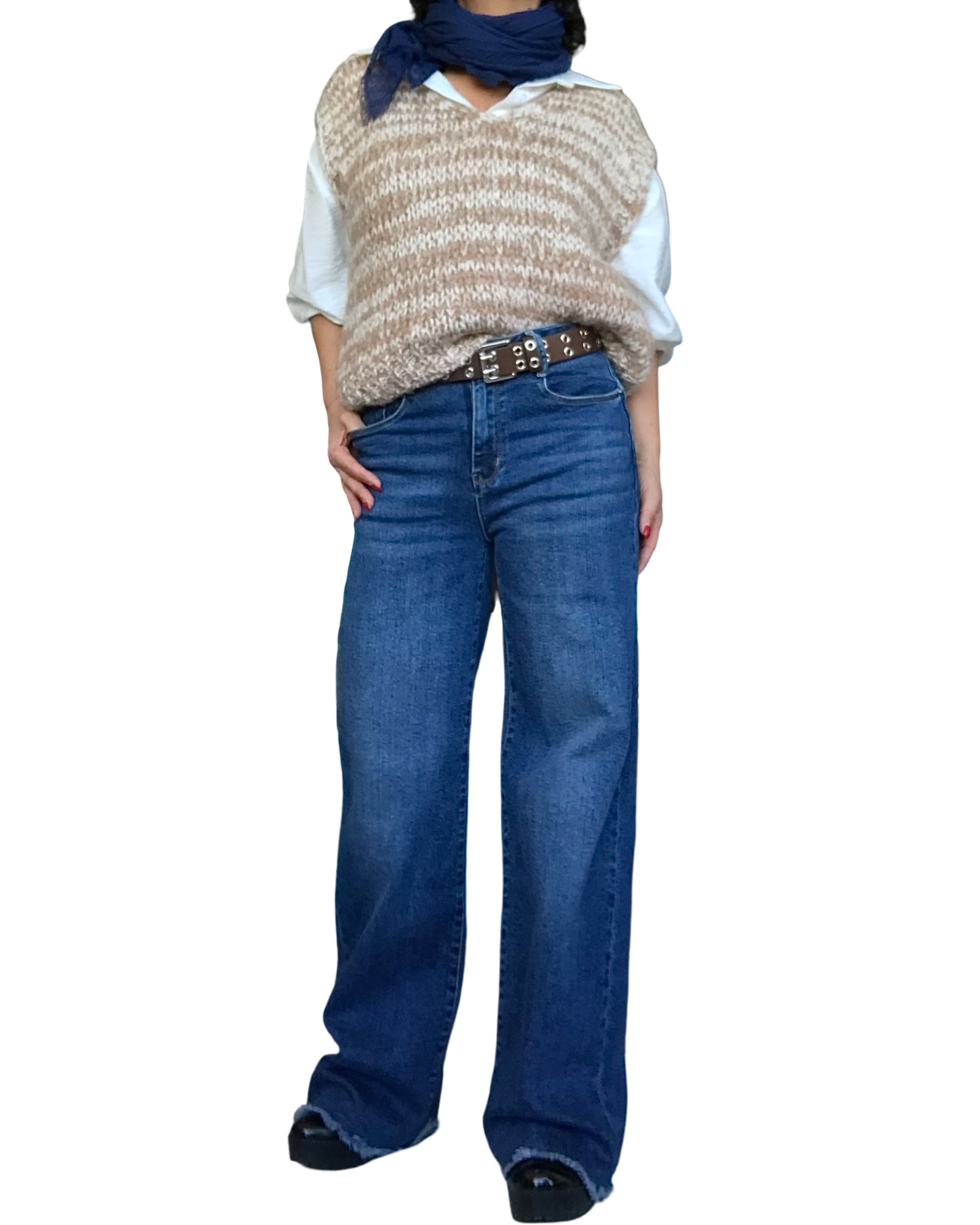 Débardeur chiné camel et crème au look décontracté 🤎. Son gros tricot doux offre une allure cosy, parfaite en superposition. Coupe courte qui modernise instantanément la silhouette.
