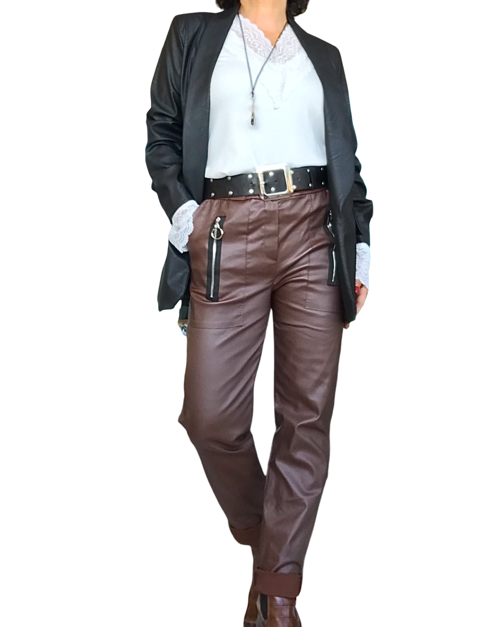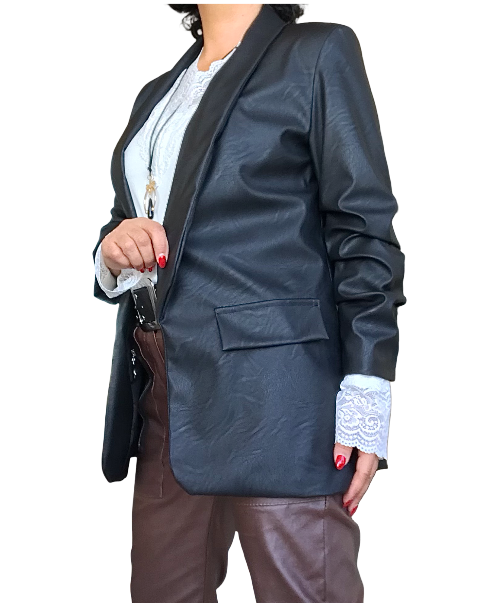 Découvrez le veston noir en similicuir 🖤, décontracté et recherché ! Col châle élégant et manches 7/8 avec effet remontées grâce à une couture ✨. Doublé pour un confort optimal, sans boutons pour un style fluide. Look sophistiqué au quotidien ! 💫