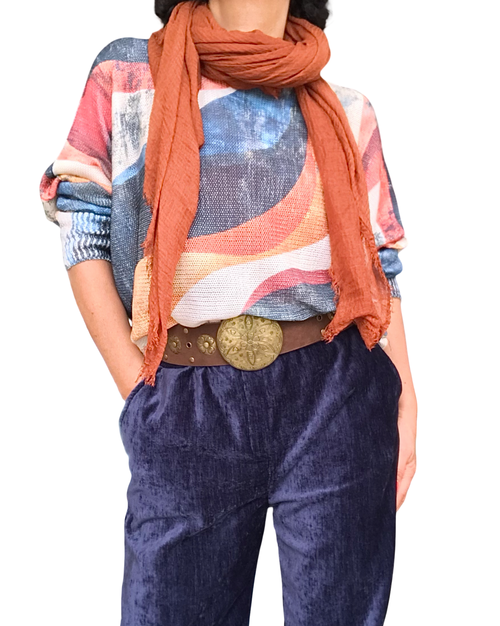 🎨 Couleurs : crème, marine, orange, brûlé, camel, rouge, vin et bleu jeans