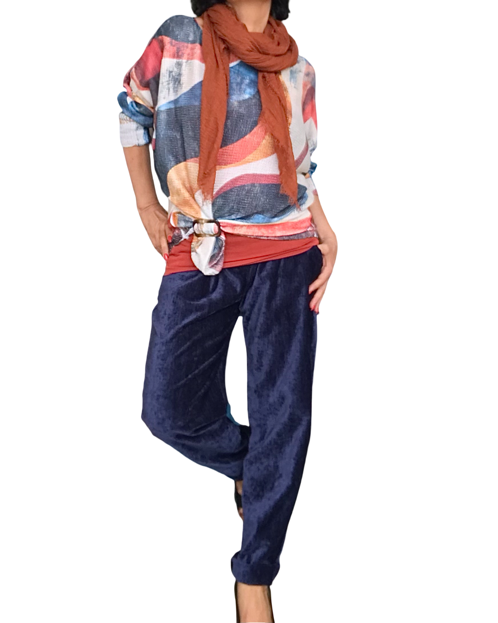 🔹 Silhouettes 1-2-3 : Portez à l’intérieur du pantalon, avec une ceinture ou une boucle d’ajustement pour marquer la taille.