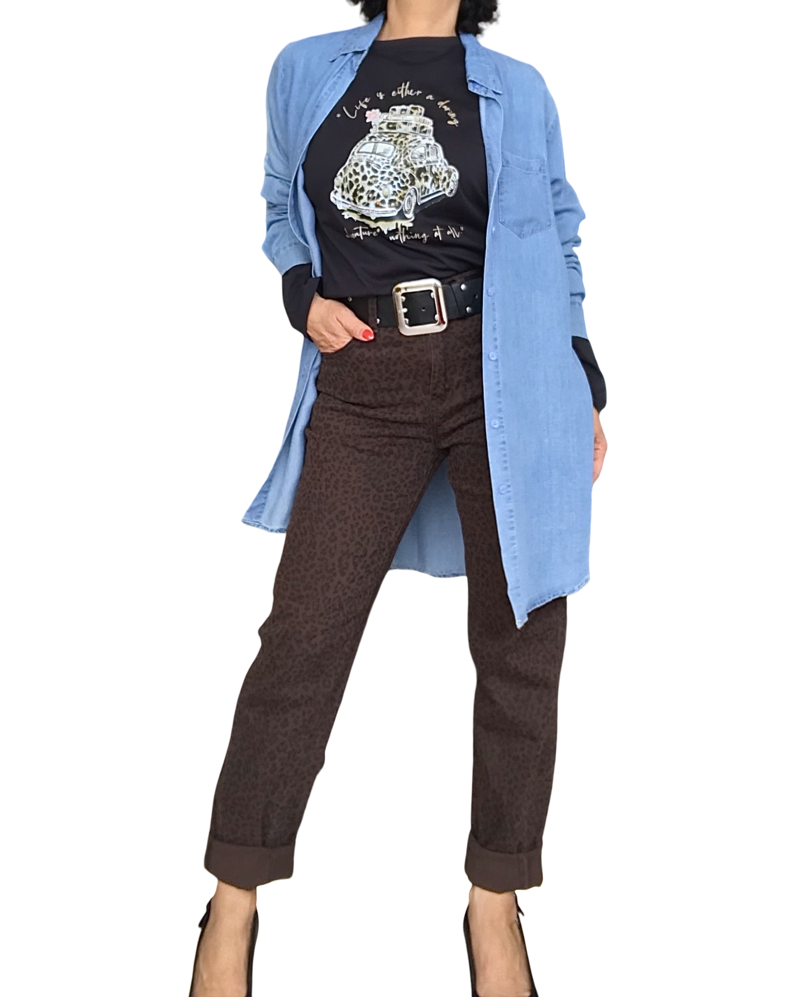 👗 Conseils et style du T-shirt noir manche longue avec voiture coccinelle en léopard